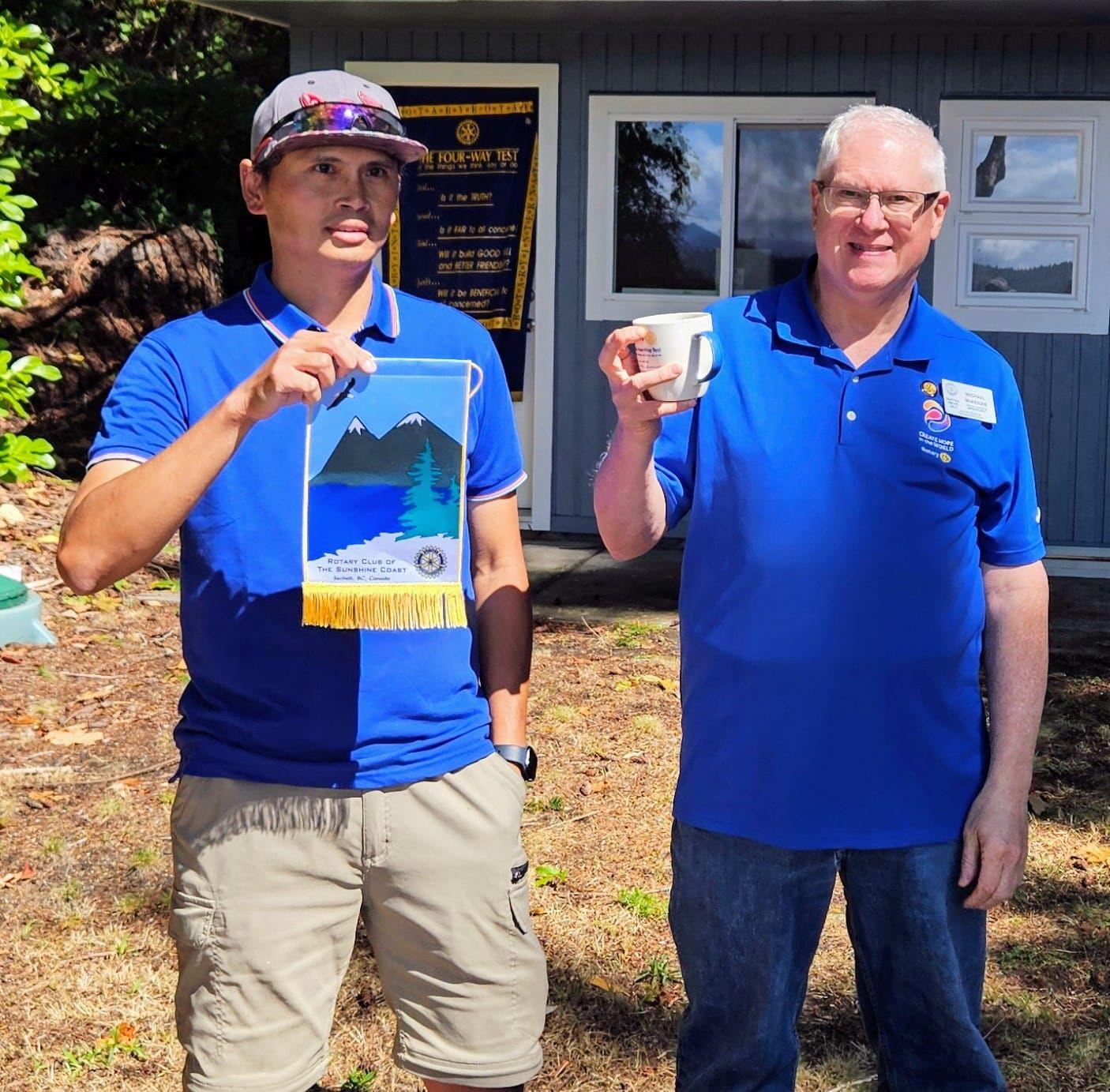 Our President, Yuhan Chen, even had a gift exchange with Sunshine Coast AG, Michael McKenzie. Yuhan presented the Rotary Club of Richmond mug to Michael, and Yuhan accepted the RC Sunshine Coast banner from Michael.