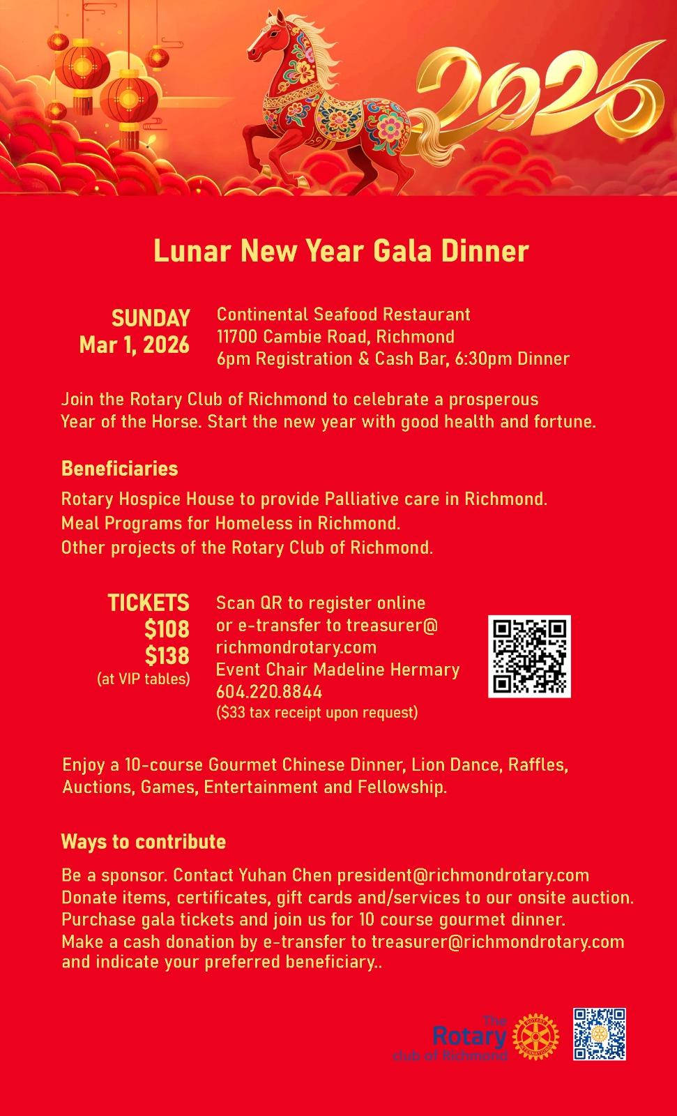 Join the Rotary Club of Richmond to celebrate a prosperous Year of the Horse.